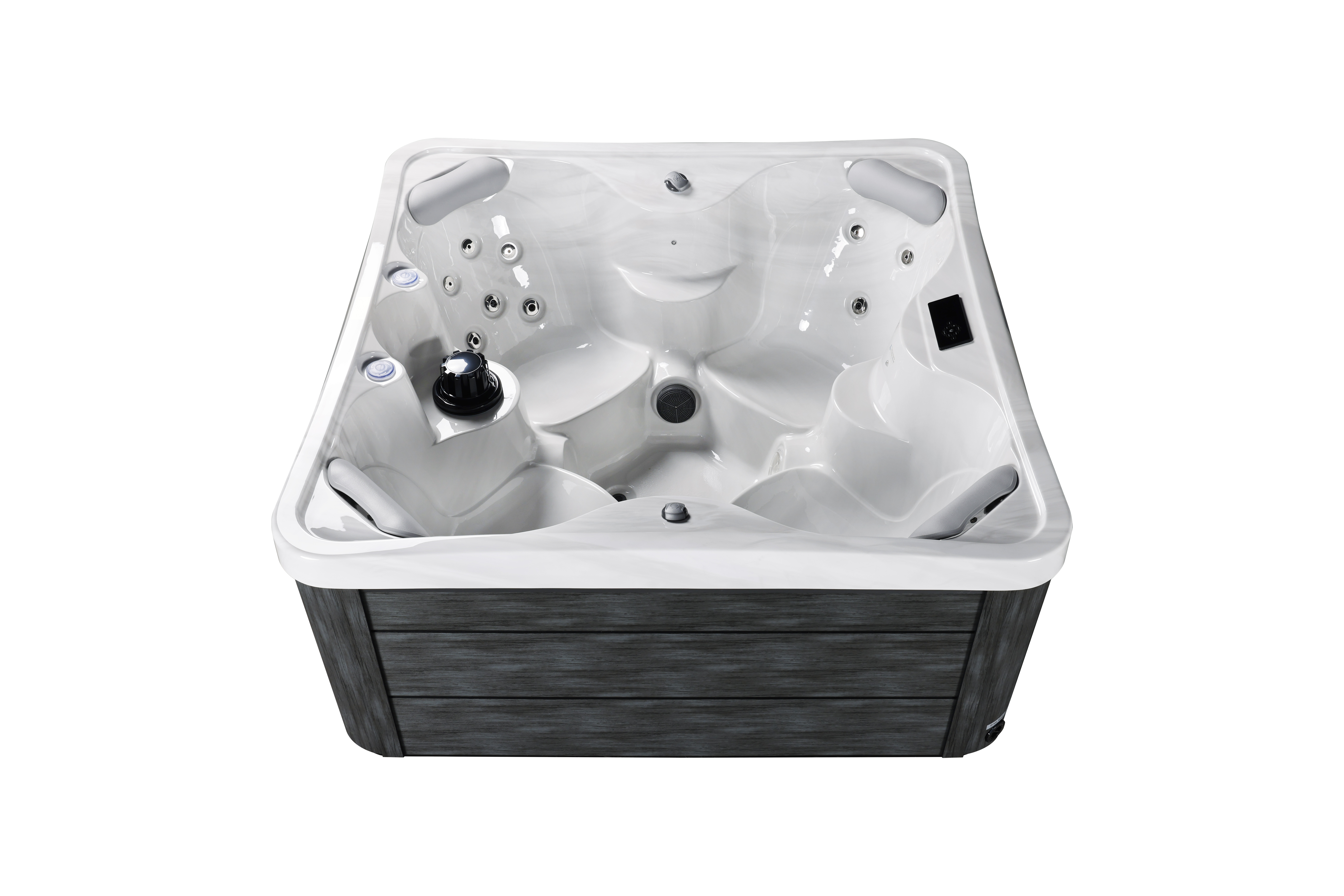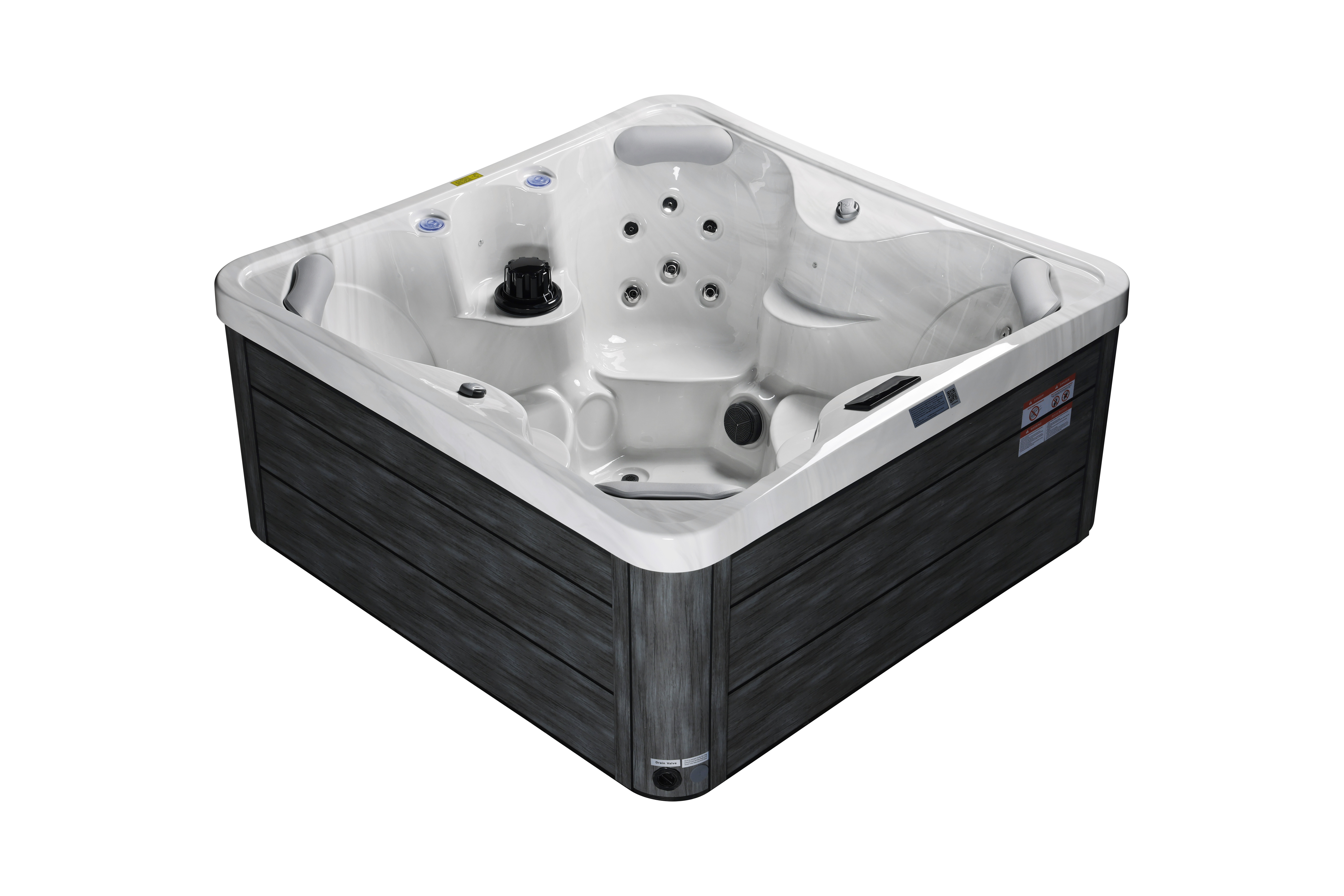 NordicSpa Nyerd с размером чаши 1,8 x 1,8 м идеально подходит для установки как внутри дома, так и на открытом воздухе. Компактная квадратная форма и четыре эргономичных подголовника с комфортом разместят до четырех человек, создавая теплую атмосферу для релаксации и общения.