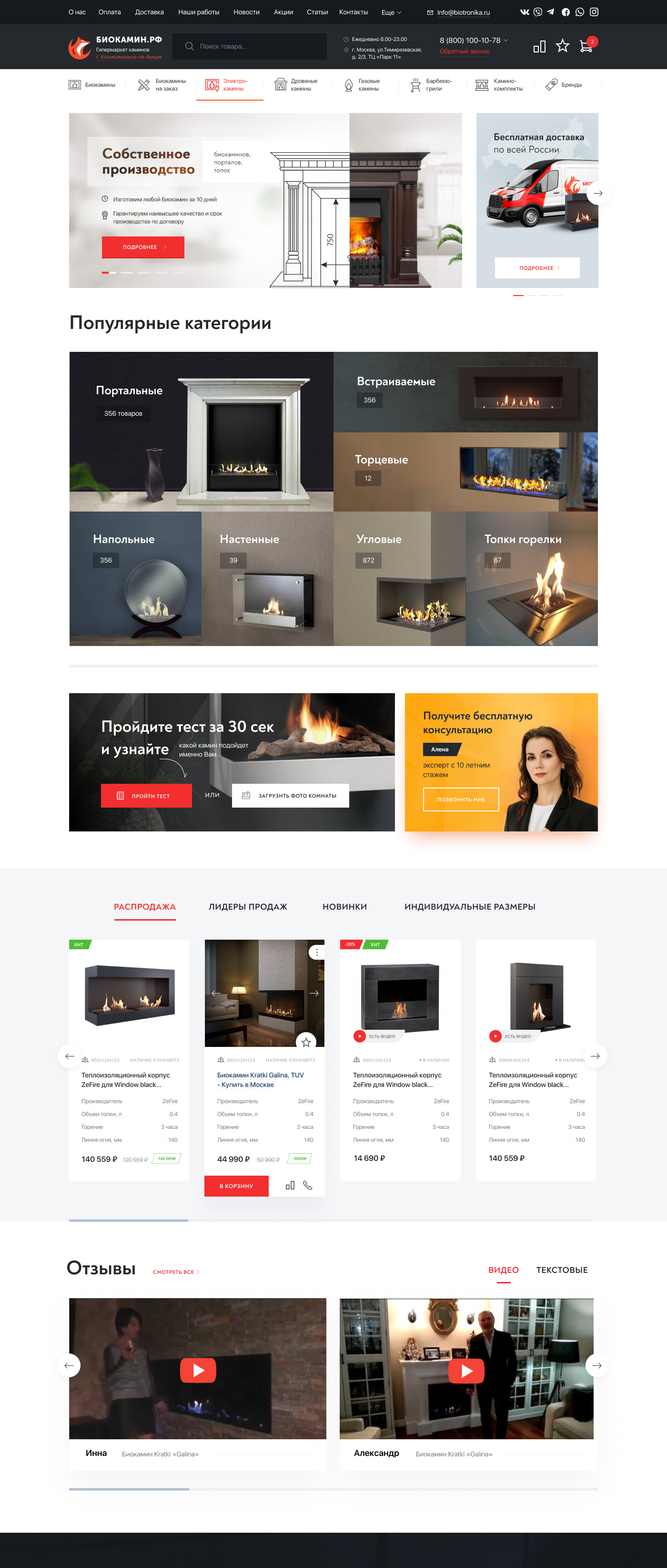 Биокамин.рф - это удобный магазин биокаминов, газовых каминов, электрокаминов, дровяных каминов, и аксессуаров с быстрой доставкой в любую точку РФ и СНГ и возможностью оплатить при получении. Свое производство, где изготовим любой биокамин по вашим размерам за 14 дней