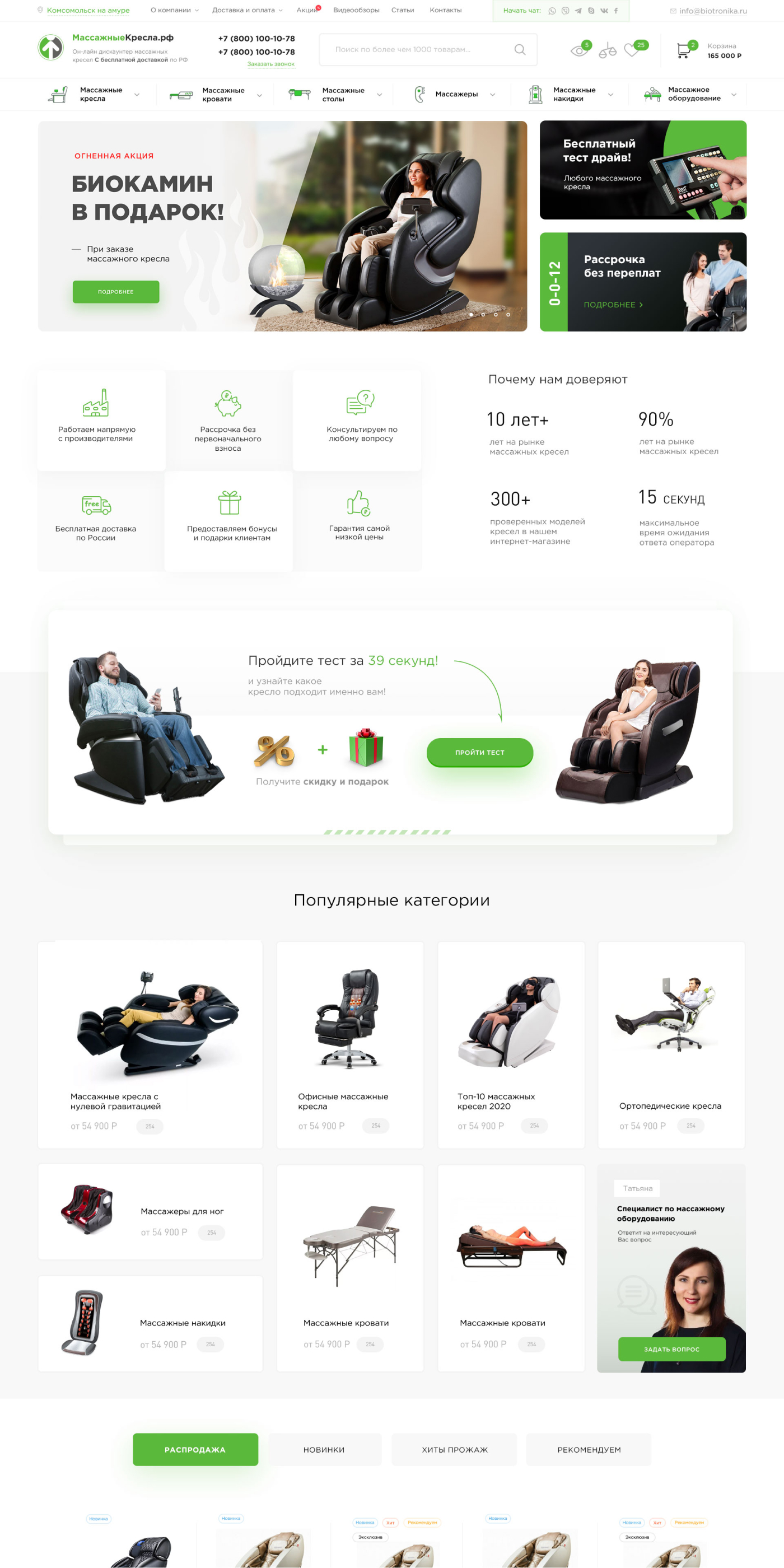 МассажныеКресла.рф - это онлайн дискаунтер, удобный магазин массажного оборудования и товаров для здоровья с быстрой доставкой в любую точку РФ и СНГ. Мы более 10 лет на рынке и мы любим то, чем занимаемся.