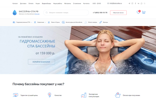 Бассейны-спа.рф - крупнейший магазин гидромассажных спа бассейнов в России! Динамично развиваемся с 2008 года. У нас более 1000 бассейнов в каталоге. Профессиональный подход к каждому клиенту.